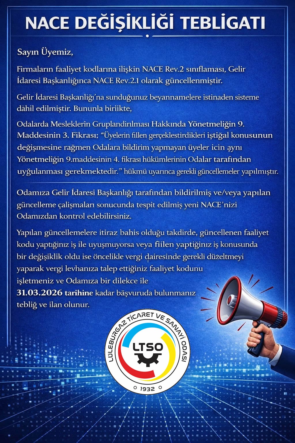 Lüleburgaz Ticaret ve Sanayi Odası online işlem hizmetlerinden faydalanabilirsiniz